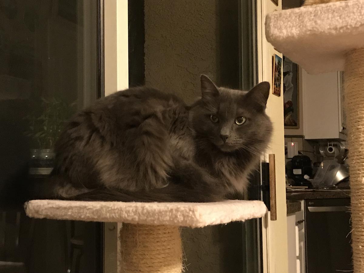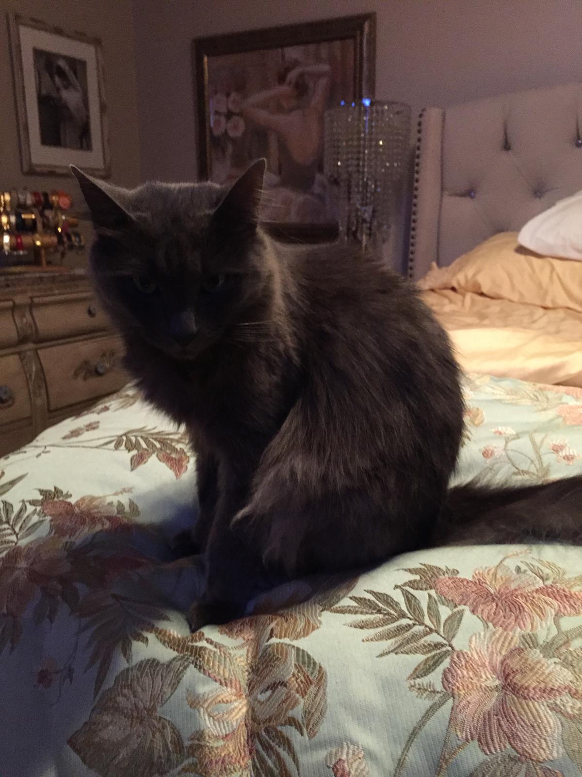 Peluza, is her name. This long hair young puss was not so nice in the beginning. She faught our staff and has even bitten a volunteer when she first arrived. Peluza came from a broken home who's family physically abused her. She came to our santuary mlnurished, emaciated, and missing a couple teeth. Now, Peluza is one of our most loving kitty cats. She enjoys belly rubs and loves it when you brush under her chin. She has grown to trust peopl, again, and has become a permanent member of Animal Paradise.