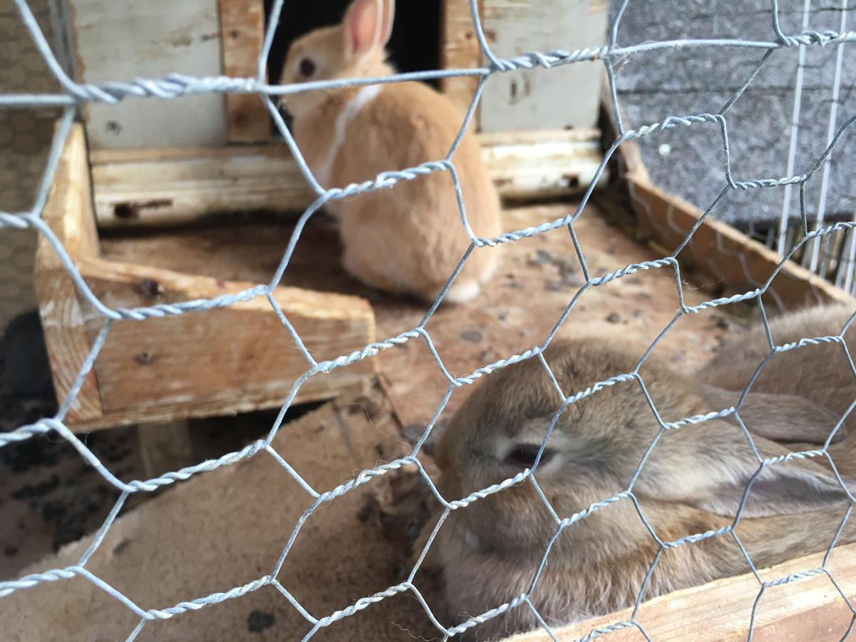 Our five rabbits are only 4 months young, and our adults vary in age. All bunnies are reading to move to permanent homes.
