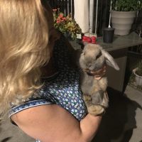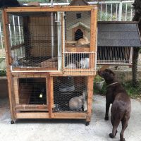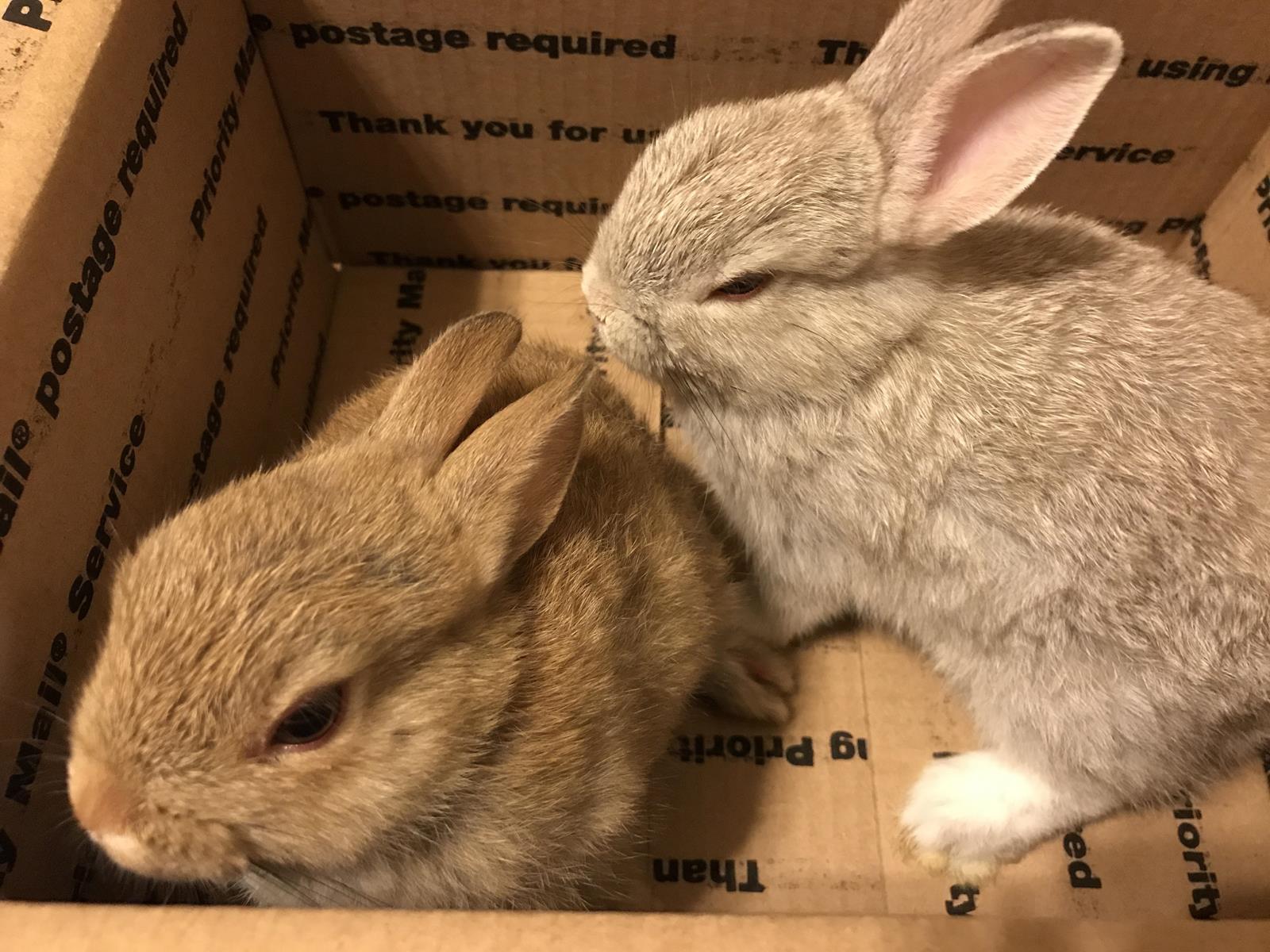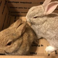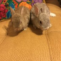 These bunnies were given to me by a neighbor who was moving to a different state. After two weeks, we saw blood in the cage and found that big surprise. Five rabbits were born. We are so happy to have all these bunnies in great health.